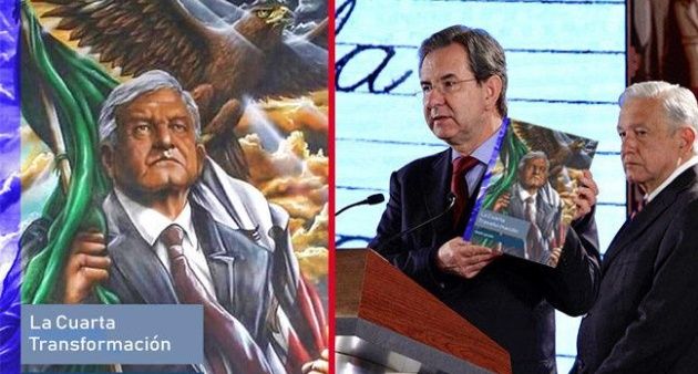 Se trata de una portada montada en donde se ve al actual Ejecutivo de la Nación con la bandera mexicana y un águila. En tanto abajo aparece el título ‘La Cuarta Transformación’.