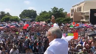 En un mitin que encabezó en la ciudad de Villahermosa, Tabasco, como parte de su gira de agradecimiento tras ganar las elecciones del 1 de julio, reiteró “el compromiso con los trabajadores” del país para que existan métodos democráticos en la elección de los dirigentes.