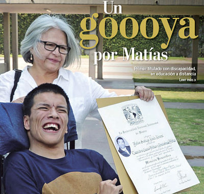 Su condición le dificulta el habla, la visión y el movimiento, pero su enorme inteligencia y tenacidad lo llevaron a acceder a la educación a distancia creada hace más de 10 años en la UNAM para que desaparezcan en el esfuerzo los impedimentos físicos, sociales, geográficos de quienes realmente desean hacer del estudio su forma de vida y su futuro para enfrentar al mundo.