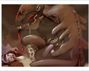 18.- Acompaña a esta publicación una pintura del ilustrador mexicano Chubaso, inspirada en “Lucy y el monstruo”.