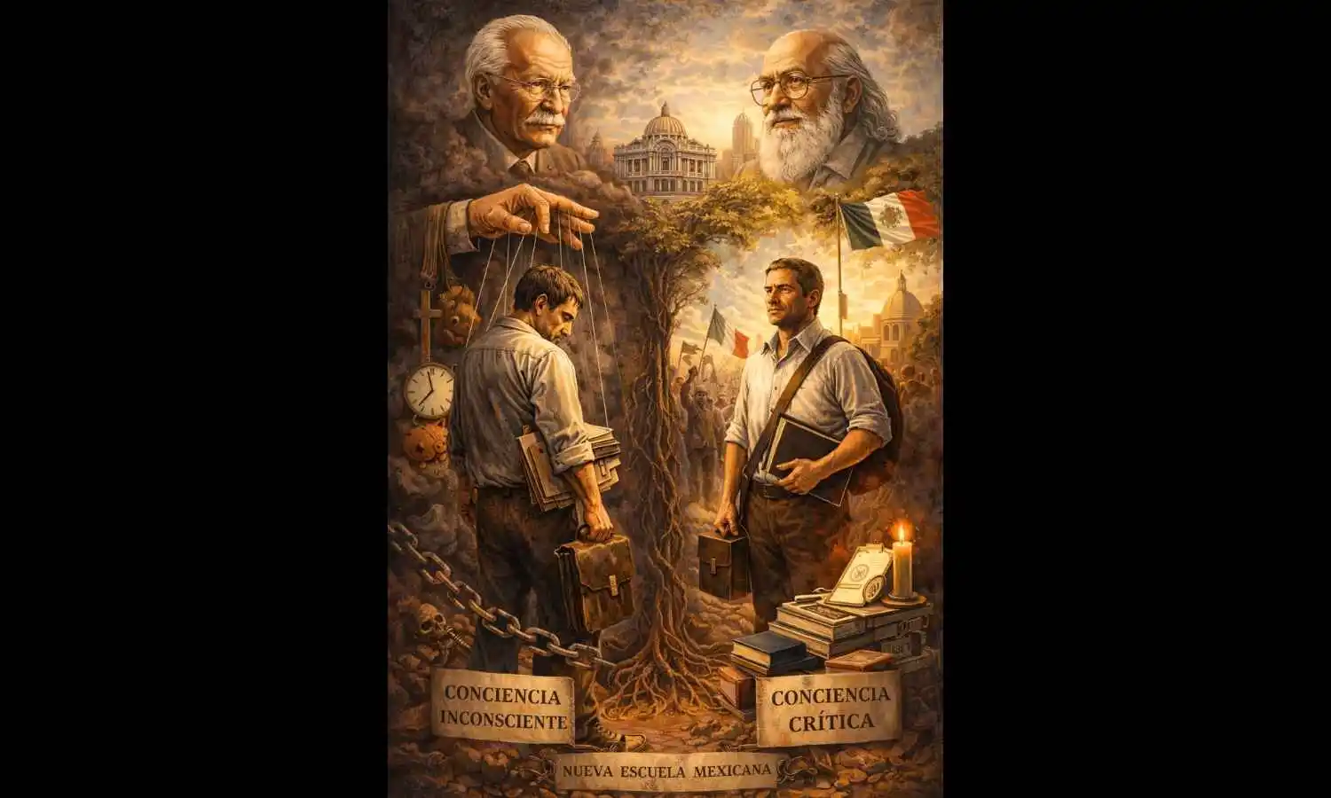 Y aquí aparece el quiebre: la Nueva Escuela Mexicana exige lectura crítica de la realidad, organización pacífica ante la injusticia y construcción colectiva del sujeto histórico; pero el maestro mismo puede encontrarse oprimido por sus propios condicionamientos inconscientes y por estructuras laborales que amenazan su estabilidad económica y su pensión. La contradicción es evidente: se le pide formar ciudadanos críticos mientras vive en un contexto que penaliza la disidencia.