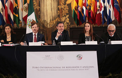 Durante su participación en “Foro Internacional de Reflexión y Análisis. El reto de formar ciudadanos para el siglo XXI”, al que asistieron representantes de diversos organismos internacionales como el Banco Interamericano de Desarrollo, así como la Organización para la Cooperación y el Desarrollo Económico (OCDE), el funcionario detalló que a partir de los resultados de los foros, se definirán también los nuevos planes de estudio, así como los contenidos en los libros de texto gratuitos de la SEP.
