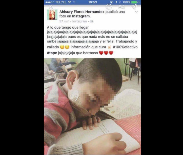 Al parecer la maestra ignoraba las implicaciones del castigo y mucho menos las consecuencias de compartir la imagen del estudiante con cinta adhesiva en la boca, pues su publicación se hizo viral recibiendo una oleada de críticas por parte de usuarios en redes sociales.