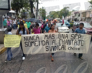 Con pancartas expresaron su malestar por la decisión de los gremios magisteriales, además de mostrar apoyo a Lara Lagunas y pidieron al Gobierno que la SEP ya no sea sometida a los chantajes de los líderes sindicales.