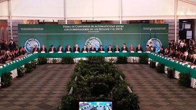 Dicho convenio consiste en que las negociaciones con el magisterio se hacen con el Gobierno Federal y serán aplicados en los estados de la república.