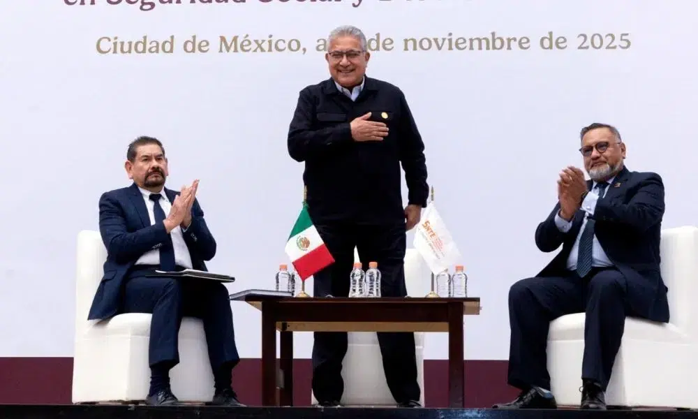 Por último recordó que el SNTE sigue firme en su demanda de “reformar la Ley de ISSSTE para desaparecer las cuentas individuales y para, en el Décimo Transitorio, incrementar a 25 el tope de las 10 Unidades de Medida y Actualización para la pensión; tenemos propuesta con corridas financieras y actuariales”.