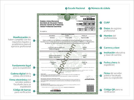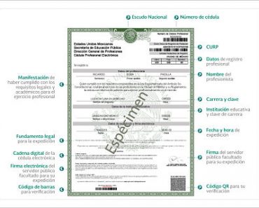 Según la SEP, la cédula electrónica es un documento que tiene efectos de patente para el ejercicio profesional y permite a la sociedad identificar, plenamente y con certeza, a la persona de la cual recibe la prestación de un servicio.