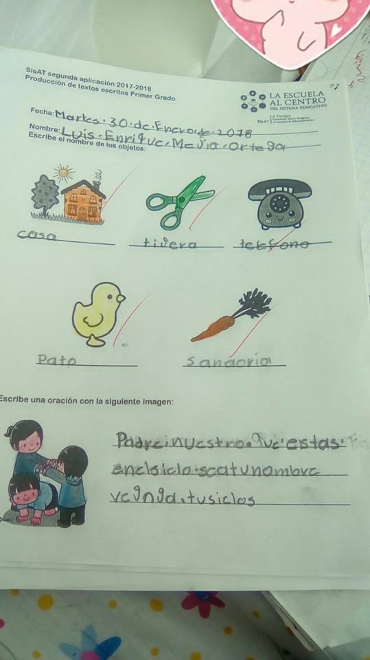 Se trata de un niño de Primer Grado llamado Luis Enrique que de manera curiosa, interpreta uno de los reactivos de la producción de textos.