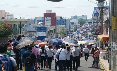 Con arengas como “Va caer, va a caer, la reforma va a caer” o “Peña decía, que todo cambiaría, pero sigue siendo, la misma porquería”, los maestros tabasqueños, con el respaldo del Sindicato de Trabajadores Administrativos y de Intendencia de la Universidad Juárez Autónoma de Tabasco (STAIUJAT), la Unión Nacional de Trabajadores Agrícolas (UNTA), Movimiento Social Democrático Independiente de Tabasco -Coordinadora Nacional Plan de Ayala (MOSDIT) y Frente Sindical Campesino Indígena Popular y Social (FSCIPS), desquiciaron el tráfico urbano en su recorrido por las principales arterias de Villahermosa.