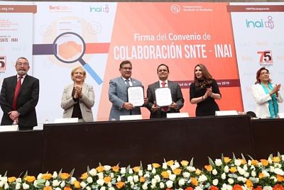 En el marco de la firma del tercer convenio de colaboración entre ambas instituciones, el comisionado presidente del INAI, Francisco Javier Acuña Llamas, expresó al secretario general del SNTE: “maestro Alfonso Cepeda, gracias por acordar este convenio para reconocer mutuamente, el INAI y el SNTE, el compromiso con la Constitución y la ley para hacer que este sindicato sea el más aplicado de esta asignatura, democrática y novedosa, que nos enseña todos los días nuevas experiencias en el afán de cumplir a México”.
