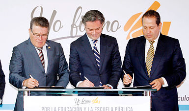 El Secretario de Educación Pública, Aurelio Nuño Mayer, hizo un reconocimiento al Presidente del Sindicato Nacional de los Trabajadores de la Educación (SNTE), Juan Díaz de la Torre, por defender a los maestros, así como por su visión para sumarse a la transformación educativa, fortaleciendo de ese modo; los principios de educación pública, laica y gratuita.