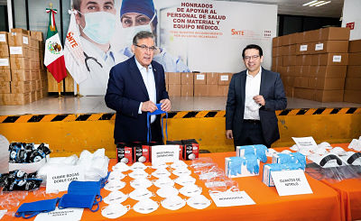 Se trata de 10 mil monogogles, 350 mil cubrebocas, 10 mil mascarillas de protección, 400 mil guantes, 200 mil cofias, 10 mil batas quirúrgicas y 9 mil 500 litros de gel antibacterial.
