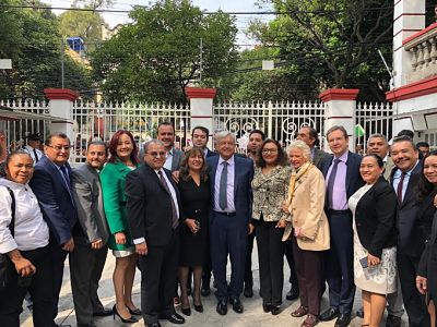 -Comitiva de Maestros por México que fue recibida por López Obrador.