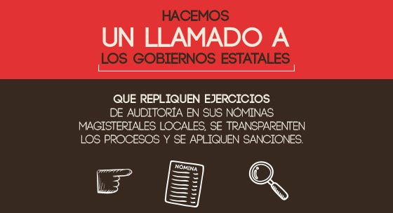 -A los gobiernos estatales, para que repliquen estos ejercicios de auditoría en sus nóminas locales, se transparenten los procesos, se apliquen sanciones y ordenen administrativamente su proceso.